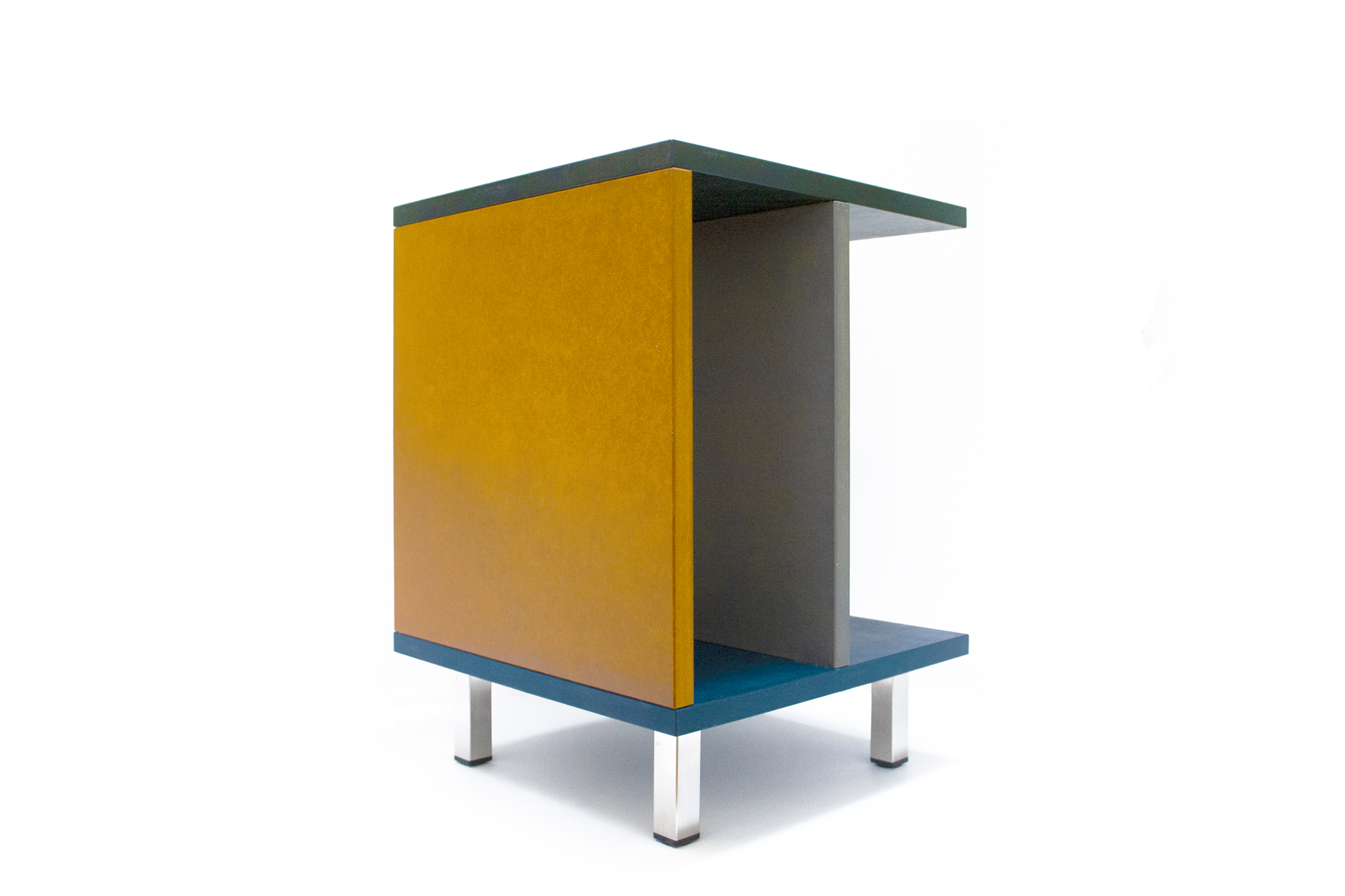 material: coloured MDF, linseed oil, chrome-plated stainless steel